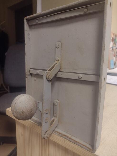Zabytkowa kratka wentylacyjna z automatycznym zamknięciem za pomocą obciążnika. Otwiera się ciągnąc za dźwignię, do ...