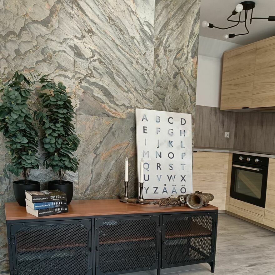 Fornir kamienny to cienka warstwa naturalnego kamienia (zazwyczaj 1–3 mm), osadzona na elastycznym podkładzie (np. z włókna szklanego lub żywicy). Dzięki temu zachowuje wygląd i fakturę prawdziwego kamienia, ale jest znacznie lżejszy i łatwiejszy w montażu. Ma szerokie zastosowanie zarówno wewnątrz, jak i na zewnątrz budynków np:Ściany dekoracyjne – w salonach, sypialniach, holach, łazienkach; nadaje elegancji i naturalnego charakteru.