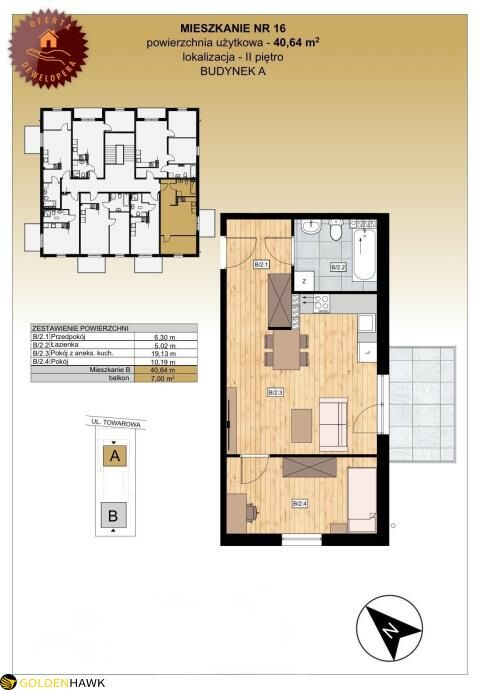powierzchnia użytkowa - 40,64 m2