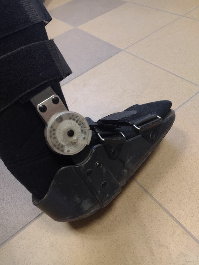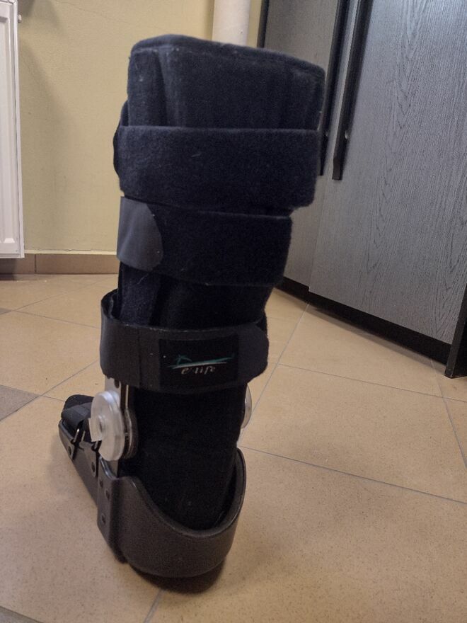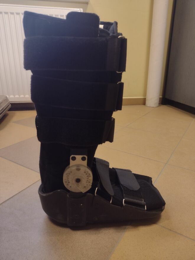 Orteza typu but ortopedyczny (stabilizator), służąca do unieruchomienia stawu skokowego i stopy.Zastosowanie: Leczenie złamań, zwichnięć, skręceń oraz pooperacyjna stabilizacja.