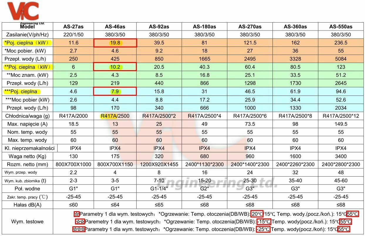 Moc: 19,8 kW jest przy temp. 20*C / 55*C (kW) , moc 10,2 kW przy temp. -15*C / 55*C, moc 7,9 kW przy temp. -25*C/55*C