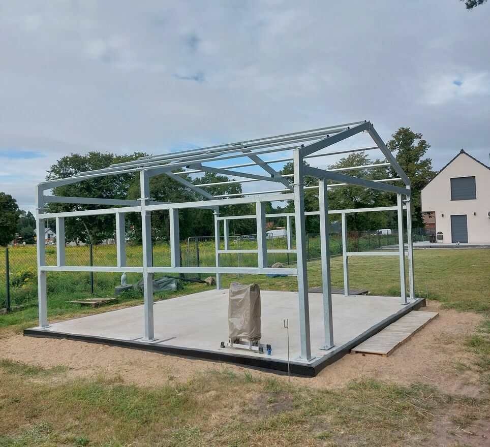 • Konstrukcja nośna ścian i dachu z kształtownika 120 mm × 80 mm × 3 mm