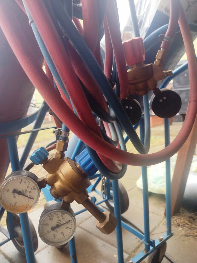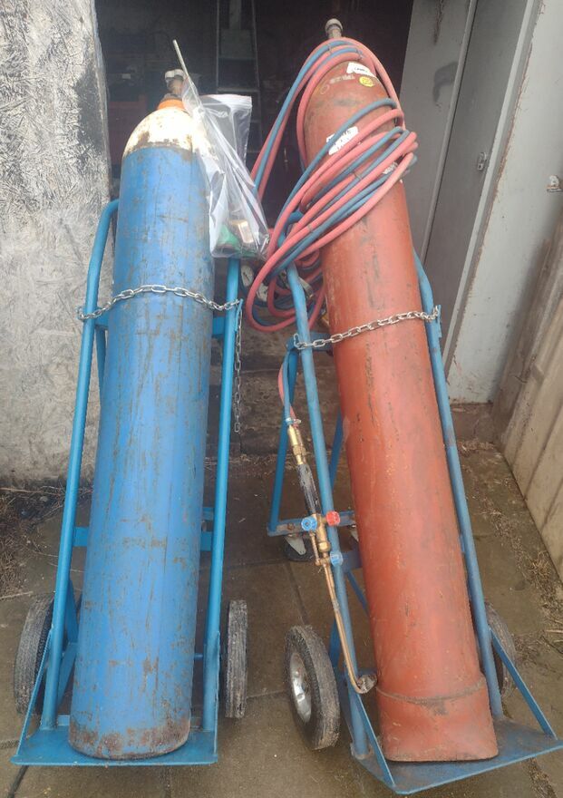 Sprzedam zestaw butli tlen i acetylen, zestaw kompletny gotowy do pracy z reduktorami wężami i palnikiem do cięcia grzania. W zestawie okulary, cyrkiel i 3 dodatkowe końcówki.W butli z tlenem jest trochę tlenu, ale nie wiem ile, acetylen butla jest pusta.