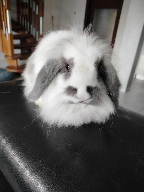 Sprzedam króliki baranki mini lop niebiesko- białe samczyki jeden urodzony 19 maja a drugi 5 kwietnia bardzo ładne po ...